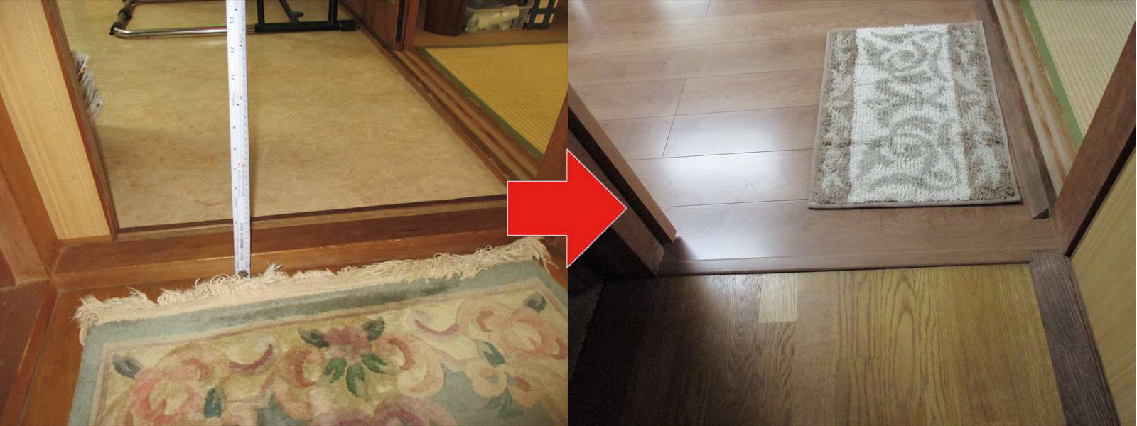 廊下からキッチン・洗面所・和室の出入り口には 3.5 ㎝もの段差がありました。