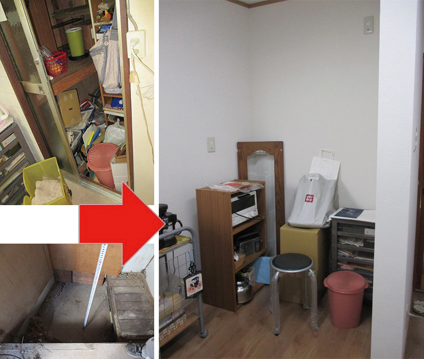 40 ㎝近く下がった土間の物入れスペース。使い勝手が悪く、しまいっぱなしになってしまうものがほとんどでした。落ちそうになったことも・・・