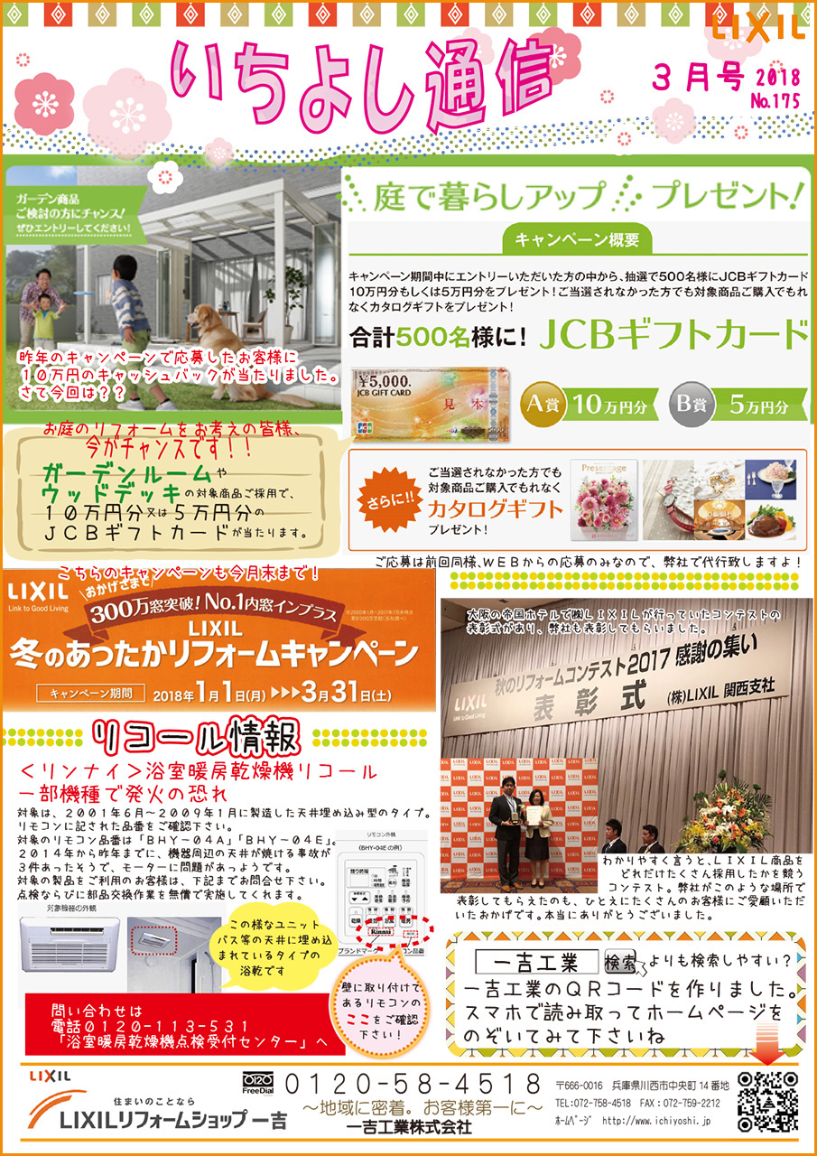 今月のいちよし通信(2018年3月号)