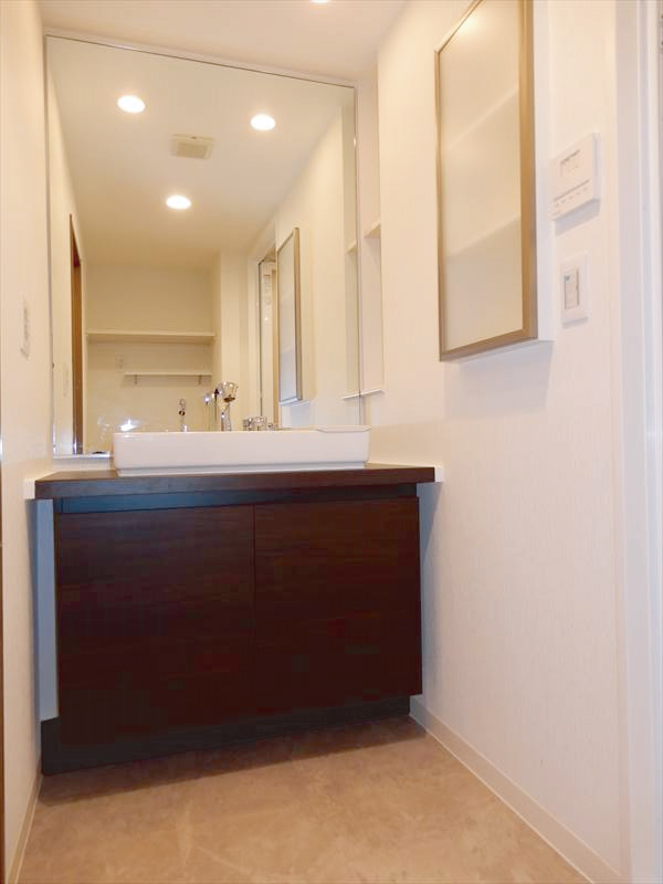 少しゆとりのできた空間にカウンターの付いた手洗い器を設置。