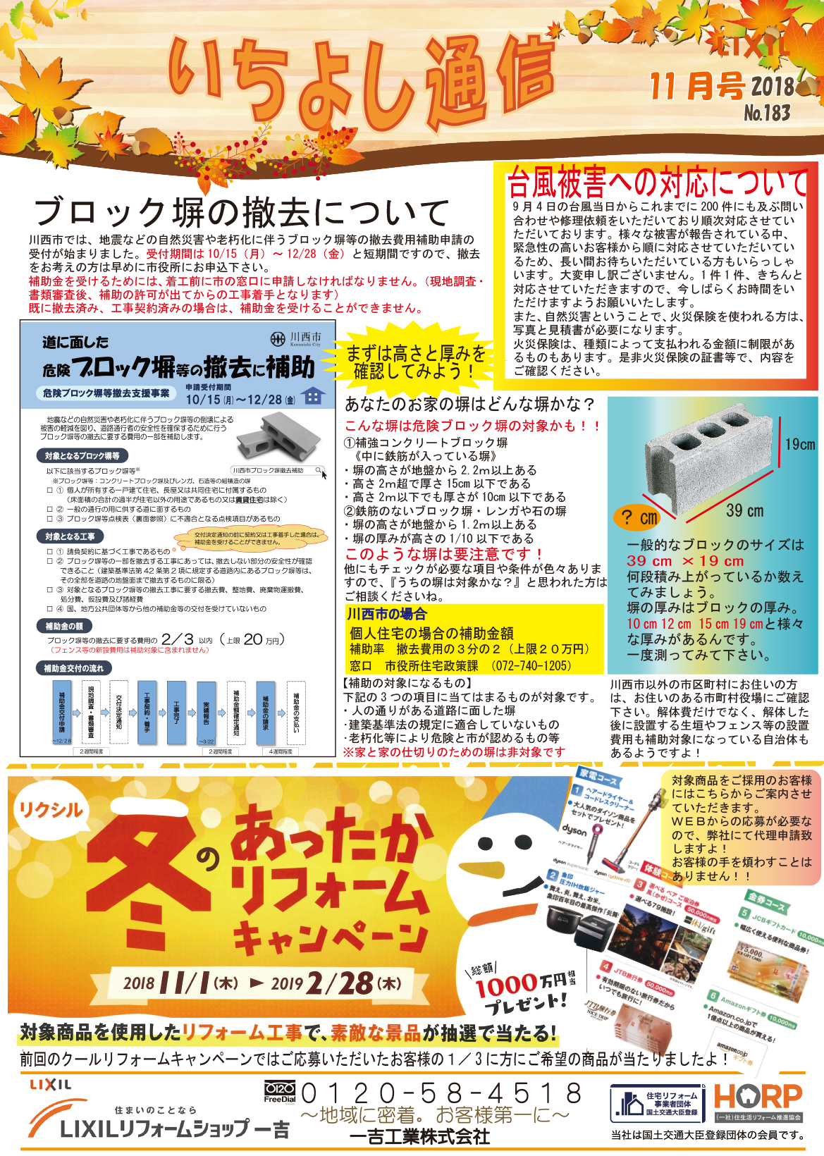 今月のいちよし通信(2018年11月号)