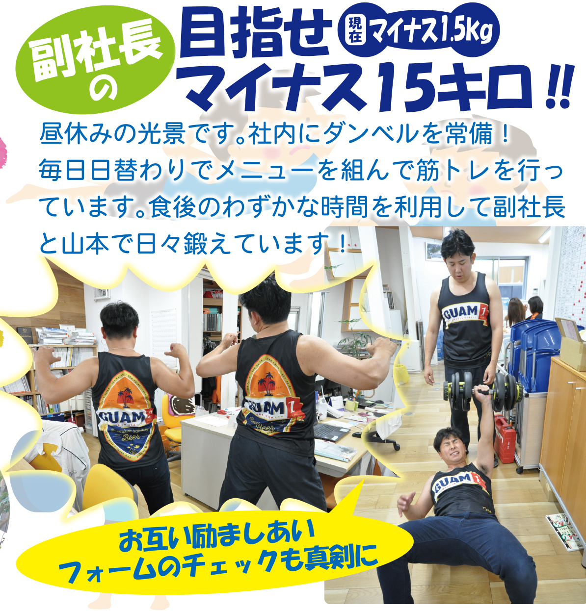 食後のわずかな時間を利用して副社長と山本で日々鍛えています。