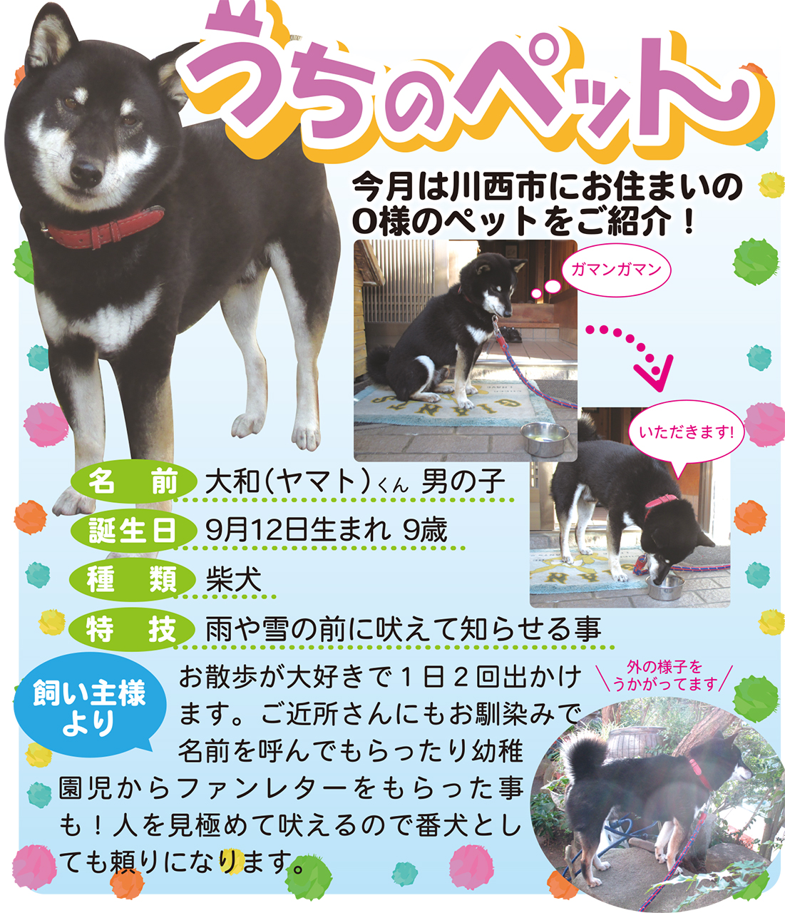 飼い主様より:お散歩が大好きで1日2回出かけます。