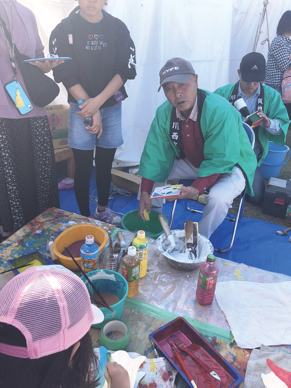 左官職人の前田はタイルコースター作りをお子様に体験してもらうお手伝いをさせていただきました。