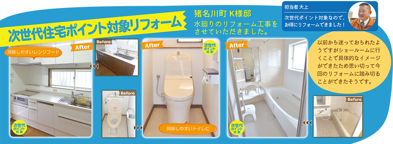 以前から迷っておられたようてすがショ ールームに行くことで具体的なイメージ ができたため思い切って今回のリフォームに踏み切ることができたそうてす。