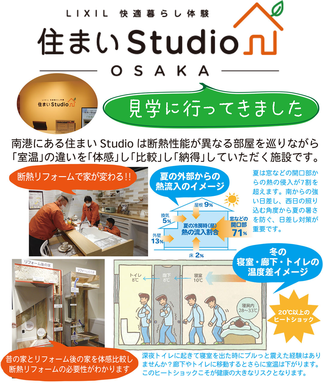 南港にある住まいStudioは断熱性能が異なる部屋を巡りながら「室温」の違いを「体感」し「比較」し「納得」していただく施設です。