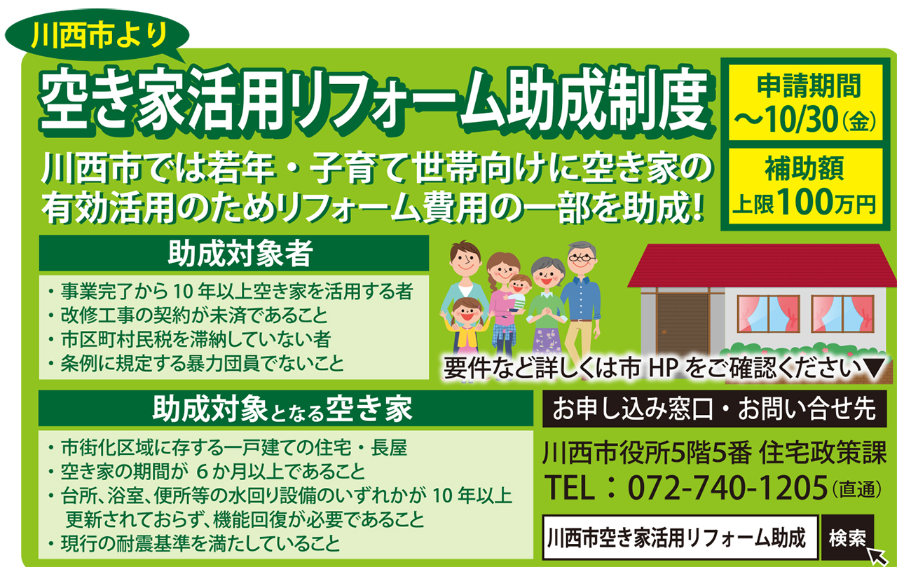 川西市では若年・子育て世帯向けに空き家のI 補助額 有効活用のためリフォーム費用の一部を助成!