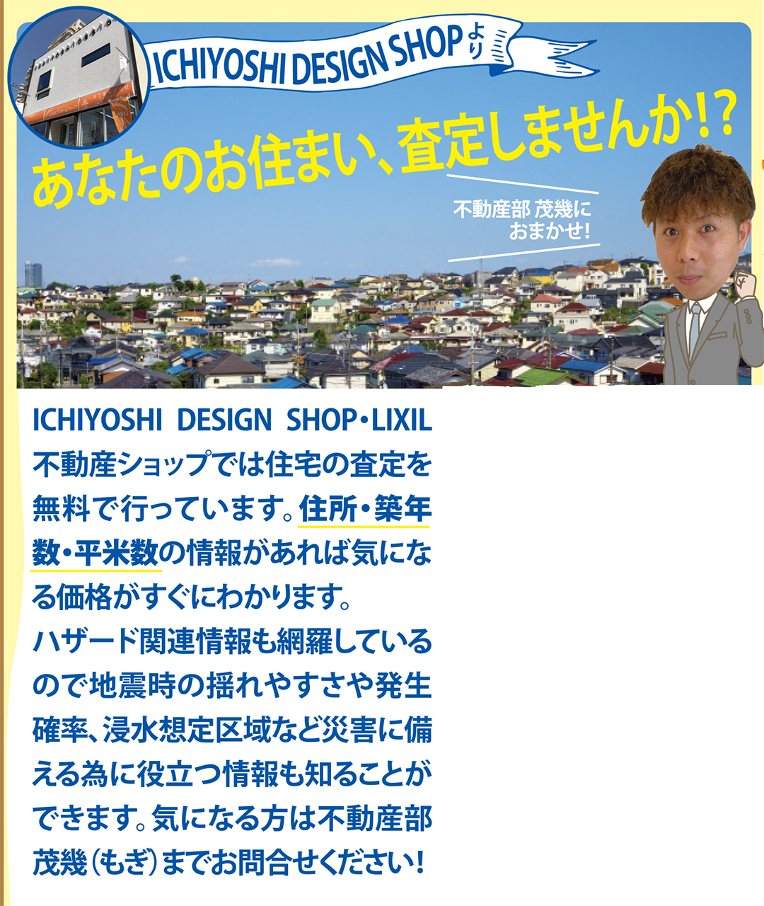 ICHIYOSHI DESIGN SHOP.LIXIL 不動産ショップでは住宅の査定を無料で行っています。