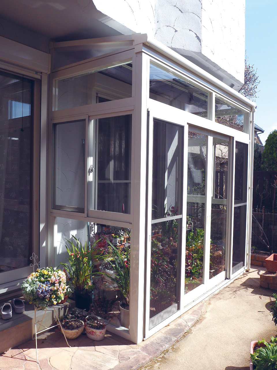 サンルーム(LIXILサニー ジュ)を設置させていただ きました。洗濯物コーナーでは無く『多肉植物』の為の温室として秋に設置しました。真冬には気温がマイ ナスの日もありましたが室内は暖かく『多肉植物』達も元気に過ごせたようです!良かったです!