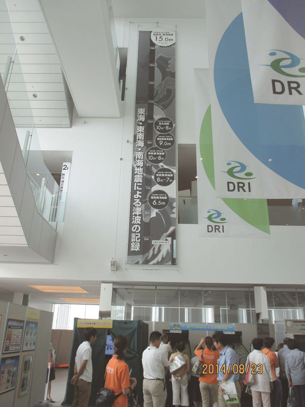30年~50年以内に必ず来るといわれている南海・東南海地震では、この高さの津波が来るといわれています。人の高さから想像してみて下さい。