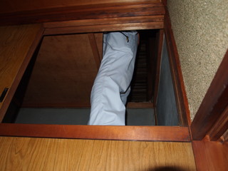 床下の確認をします。(今回は床下収納がなかったので換気口から確認しました)