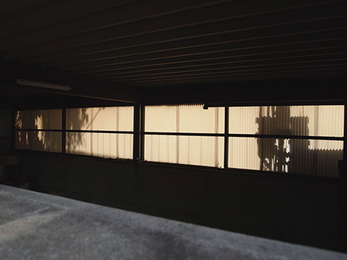 昼間でもこんなに暗かったガレージ内。柱は老朽化して今にも崩れそうになっていました。