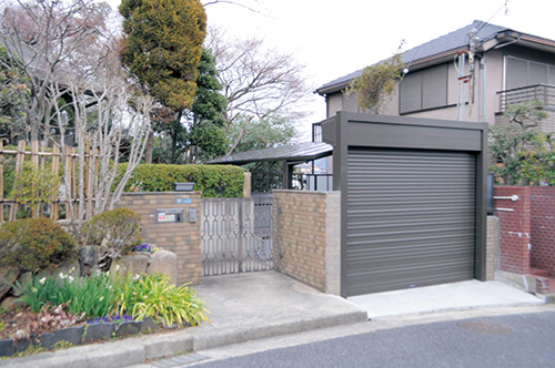 前の道はちょうどカーブになっていて道幅も狭いので、電動シャッターにすることでスムーズに車の出し入れが出来ます。