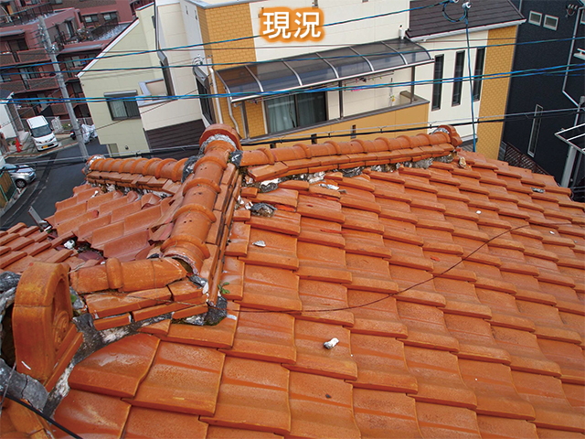 その土と瓦の重さを合わせるとなんと6~8tにもなります。(約100㎡の屋根で計算)
