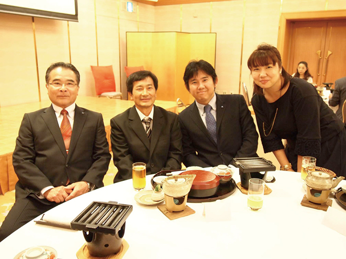 弊社設立 25 年の記念の年に、常務の尾上と工務の立山の二人が赤いちゃんちゃんこを着せられました。二人ともなかなか似合ってました!お嬢様たちからのサプライズレターに瞳をウルウルさせるお父さんたちでした。