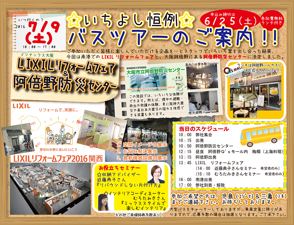 今回は南港での LIXIL リフォームフェアと、大阪阿倍野にある阿倍野防災センターに決定しました。