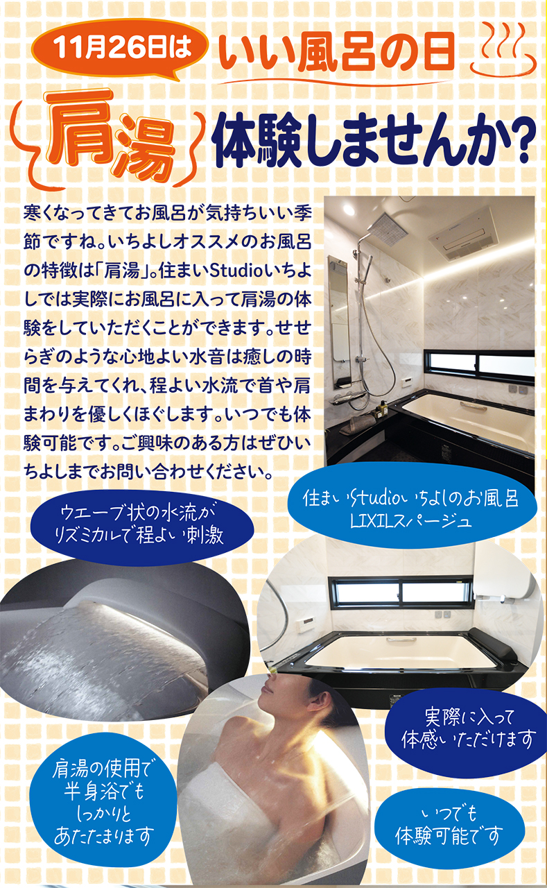 11月26日は いい風呂の日 肩湯体験しませんか?