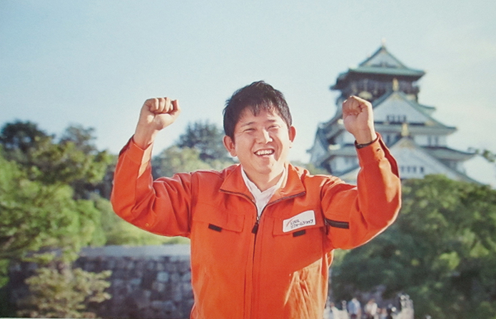 大阪城をバックにガッツポーズの和島です。(写真をクリックしてください)