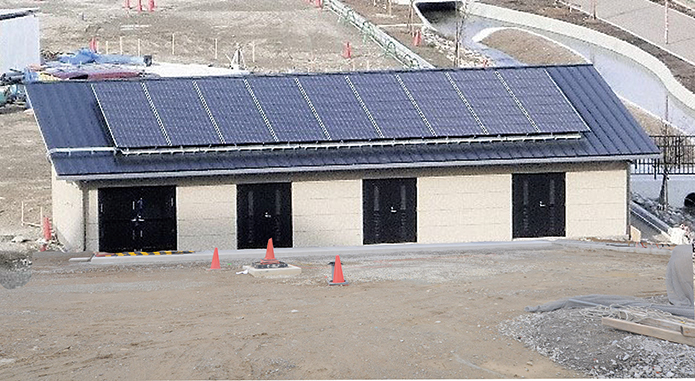トイレの屋根には太陽光発電のパネルが乗っかっています