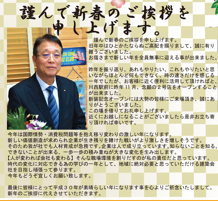 最後に皆様にとって平成30年が素晴らしい年になります事を心よりご祈念いたしまして。新年のご挨拶に代えさせていただきます。
