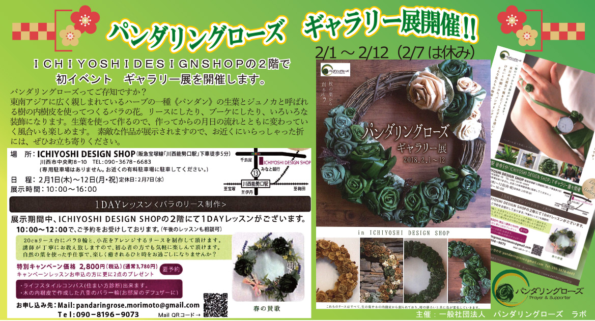 展示期間中ICHIYOSHI DESIGNS SHOP の2階にて1DAYレッスンがございます。