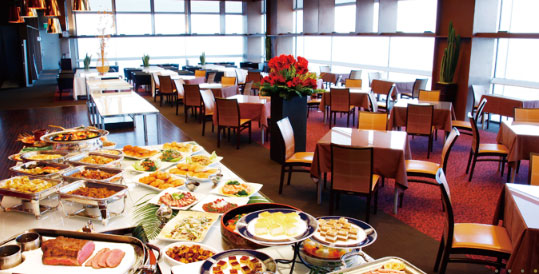 昼食はWTC コスモタワー48 階、地上200mにあるワールドビュッフェ