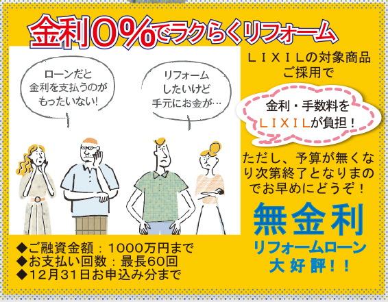 LIXILの対象商品ご採用で、金利・手数料をLIXILが負担!(※予算が無くなり次第終了)