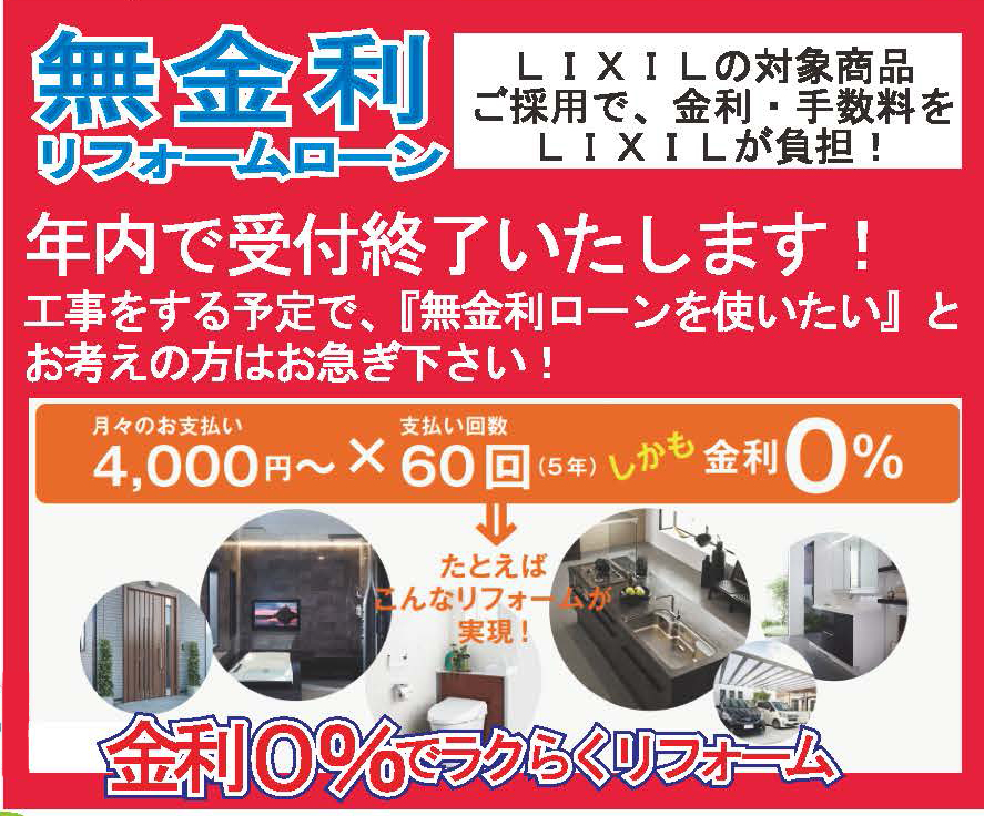 工事をする予定で、『無金利ローンを使いたい』とお考えの方はお急ぎ下さい!