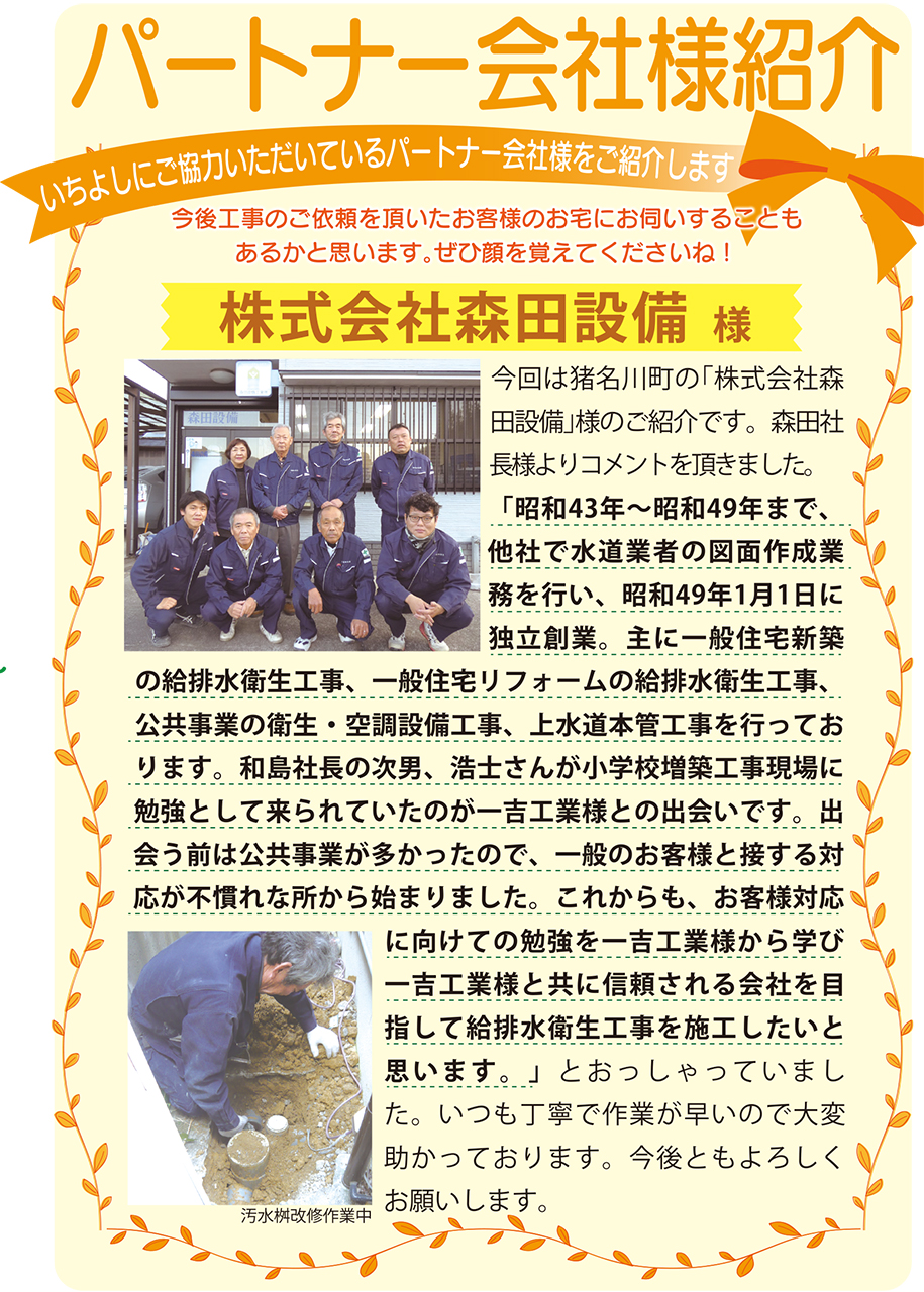 いちよしにご協力いただいているパートナー会社様をご紹介します。今後工事のご依頼を頂いたお客様のお宅にお伺いすることもあるかと思います。是非顔を覚えてくださいね!
