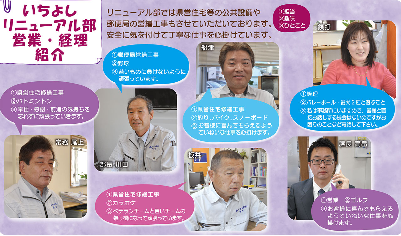 リニューアル部では県営住宅の公共設備や郵便局の営繕工事もさせていただいております。