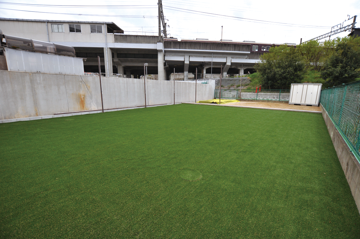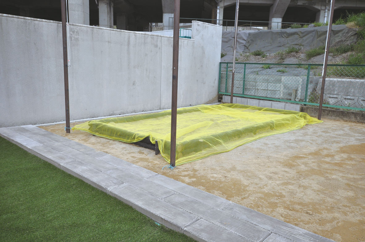 手前に駐車場がありその奥に園庭と砂場ができました。