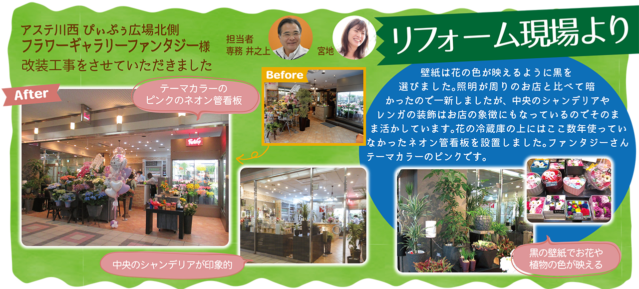 アステ川西 ぴいぷぅ広場北側 フラワーギャラリーファンタジー様改装工事をさせていただきました