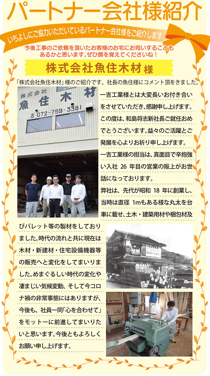 「株式会社魚住木材」様のご紹介です。社長の魚住様にコメント頂をきました。