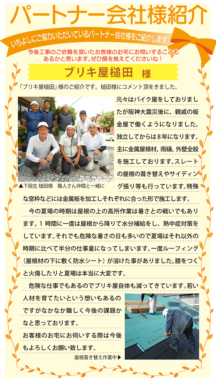 今後工事のご依頼を頂いたお客様のお宅にお伺いすることもあるかと思います。ぜひ顔を覚えてくださいね!