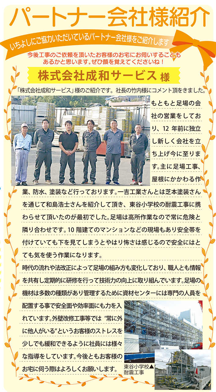 「株式会社成和サービス」様のご紹介です。社長の竹内様にコメント頂をきました。