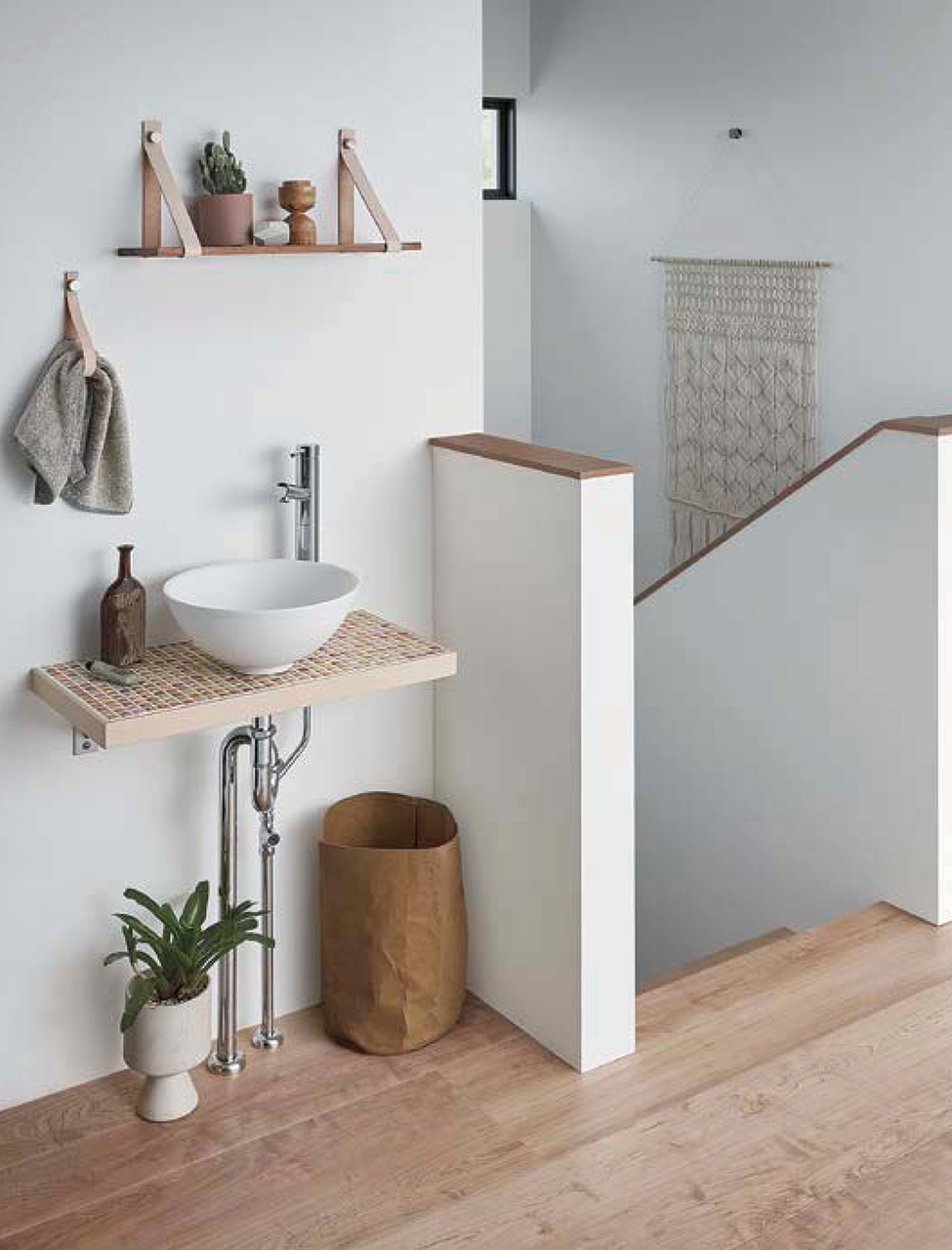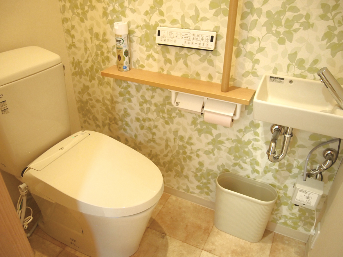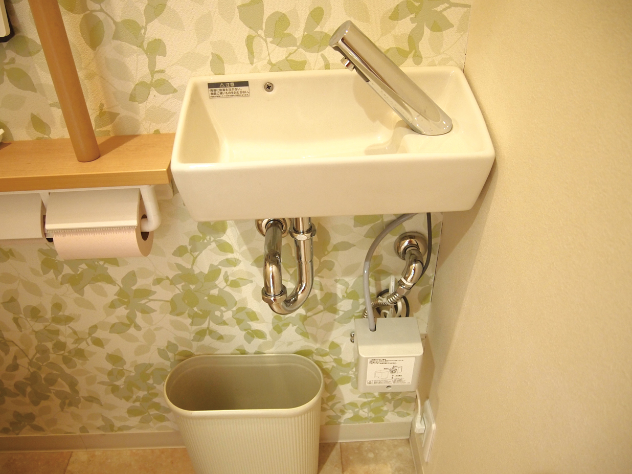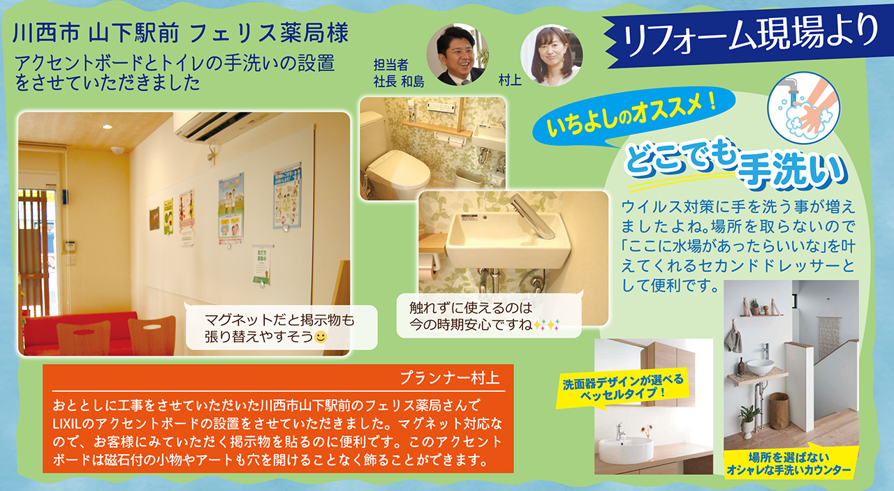川西市 山下駅前 フェリス薬局様 アクセントボードとトイレの手洗いの設置をさせていただきました