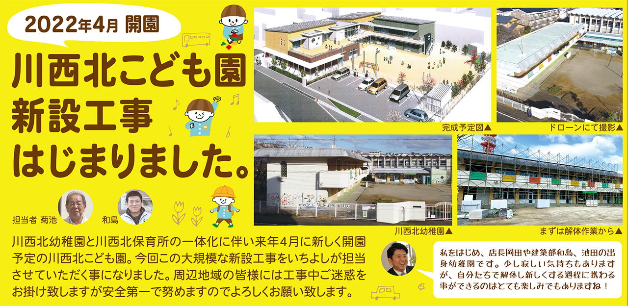 川西北幼稚園と川西北保育所の一体化に伴い来年4月に新しく開園 予定の川西北こども園。