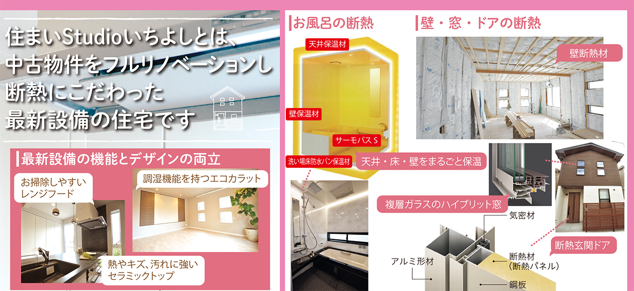 住まいStudioいちよしとは、 中古物件をフルリノベーションし断熱にこだわった最新設備の住宅です。
