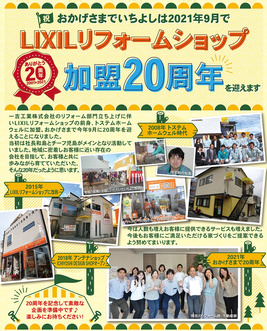 おかげさまでいちよしは2021年9月でLIXILリフォームショップ加盟20周年を迎えます