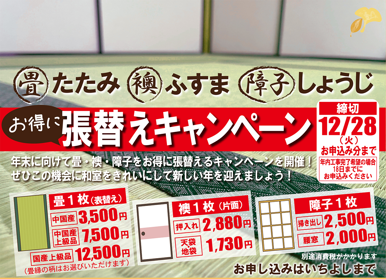 年末に向けて畳・襖・障子をお得に張替えるキャンペーンを開催!