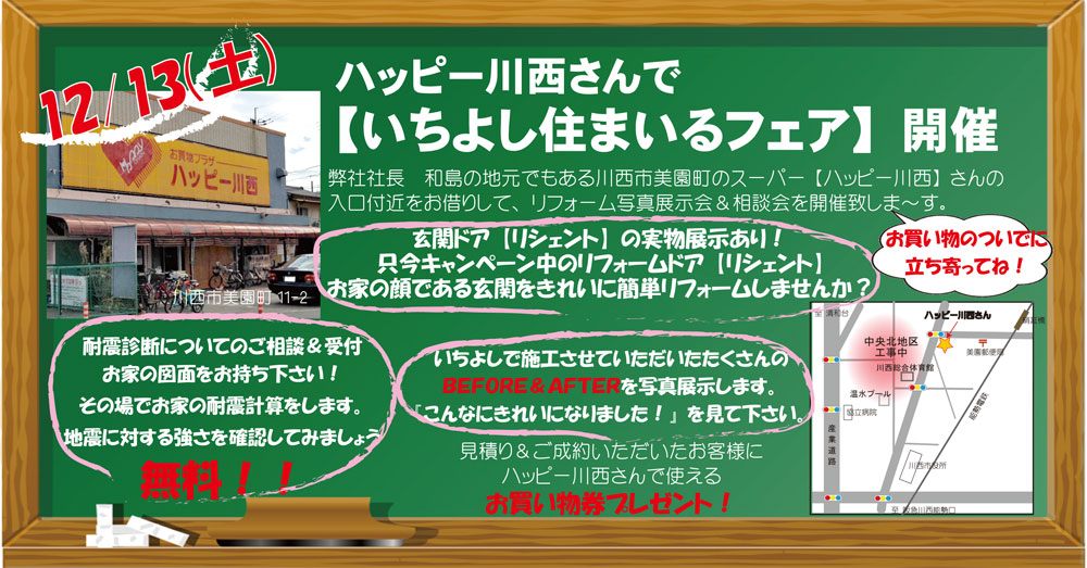12/13(土)ハッピー川西さんで【いちよし住まいるフェア】開催します!