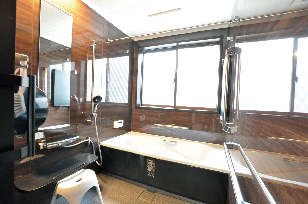 ショールームを 参考に お風呂は、 LIXILアライズ屋久杉の板を再利用 ご主人の趣味のコーナーに