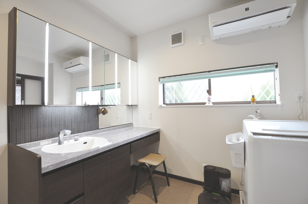 広くなった洗面室にはLIXILのルミシスを設置。