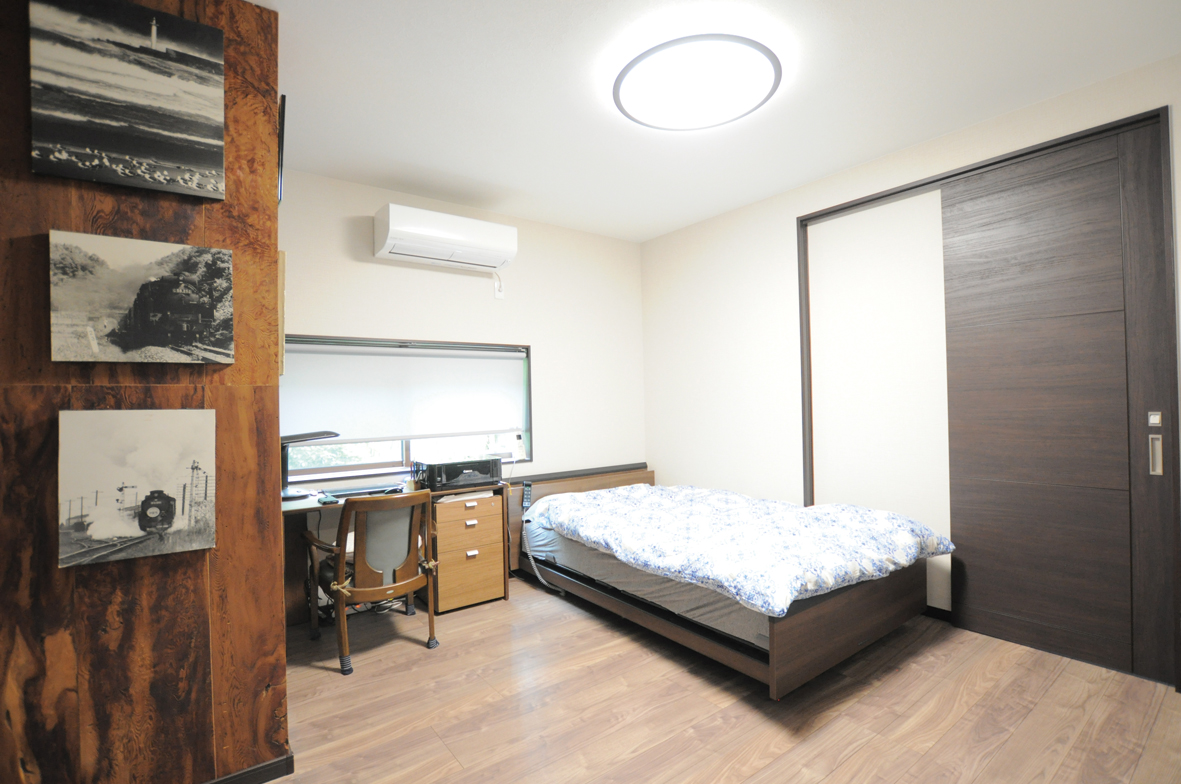 ご主人様のお部屋には、応接室にあった屋久杉の板を柱に貼り、ご趣味の写真を飾るのにぴったりなコーナーができました。