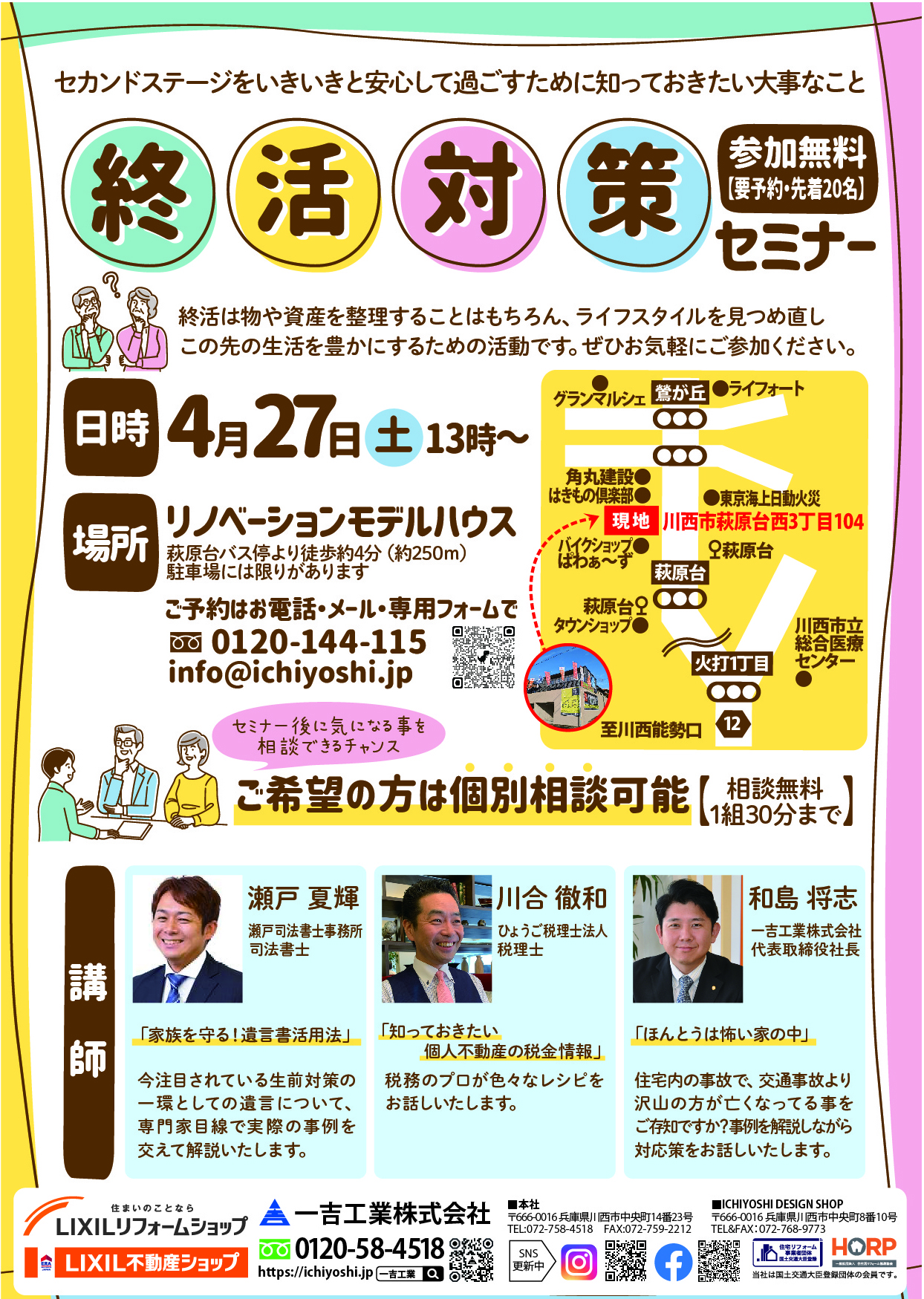一吉工業不動産部では司法書士、税理士の方に終活対策としてそれぞれの専門知識をお話していただくセミナーを開催します。