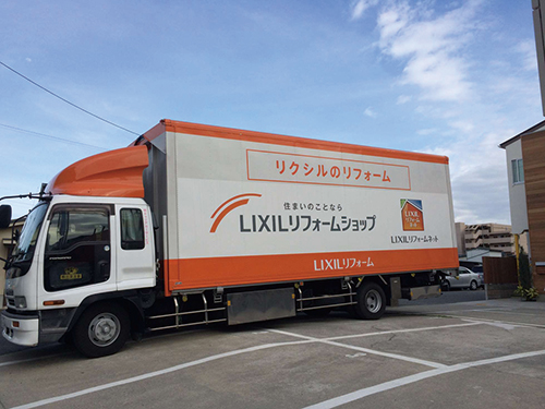 LIXILの移動展示車が本物の設備機器を載せてやって来ました。