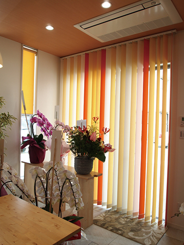 ブラインドは縦型のオレンジを基調にしたグラデーションタイプにしました。