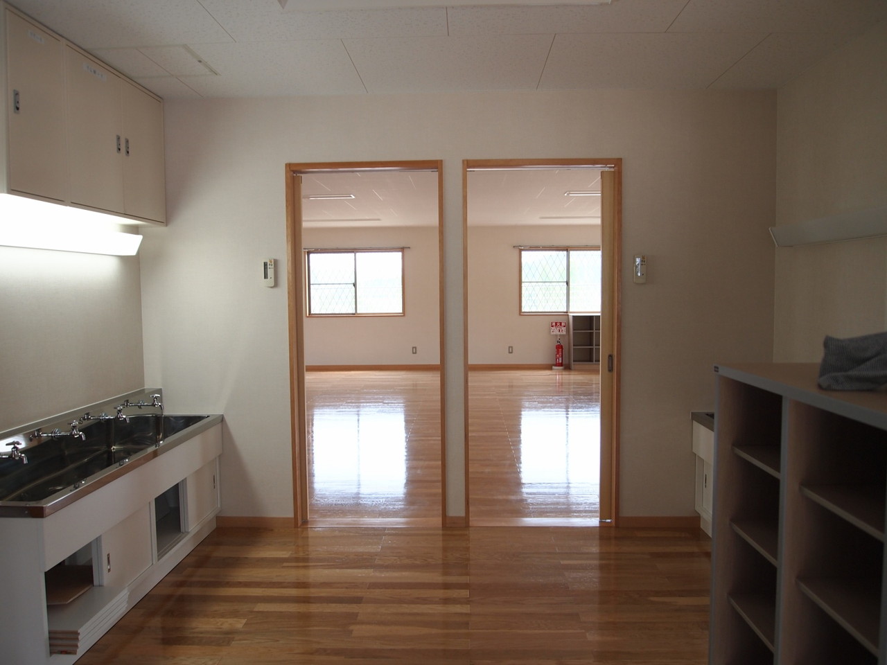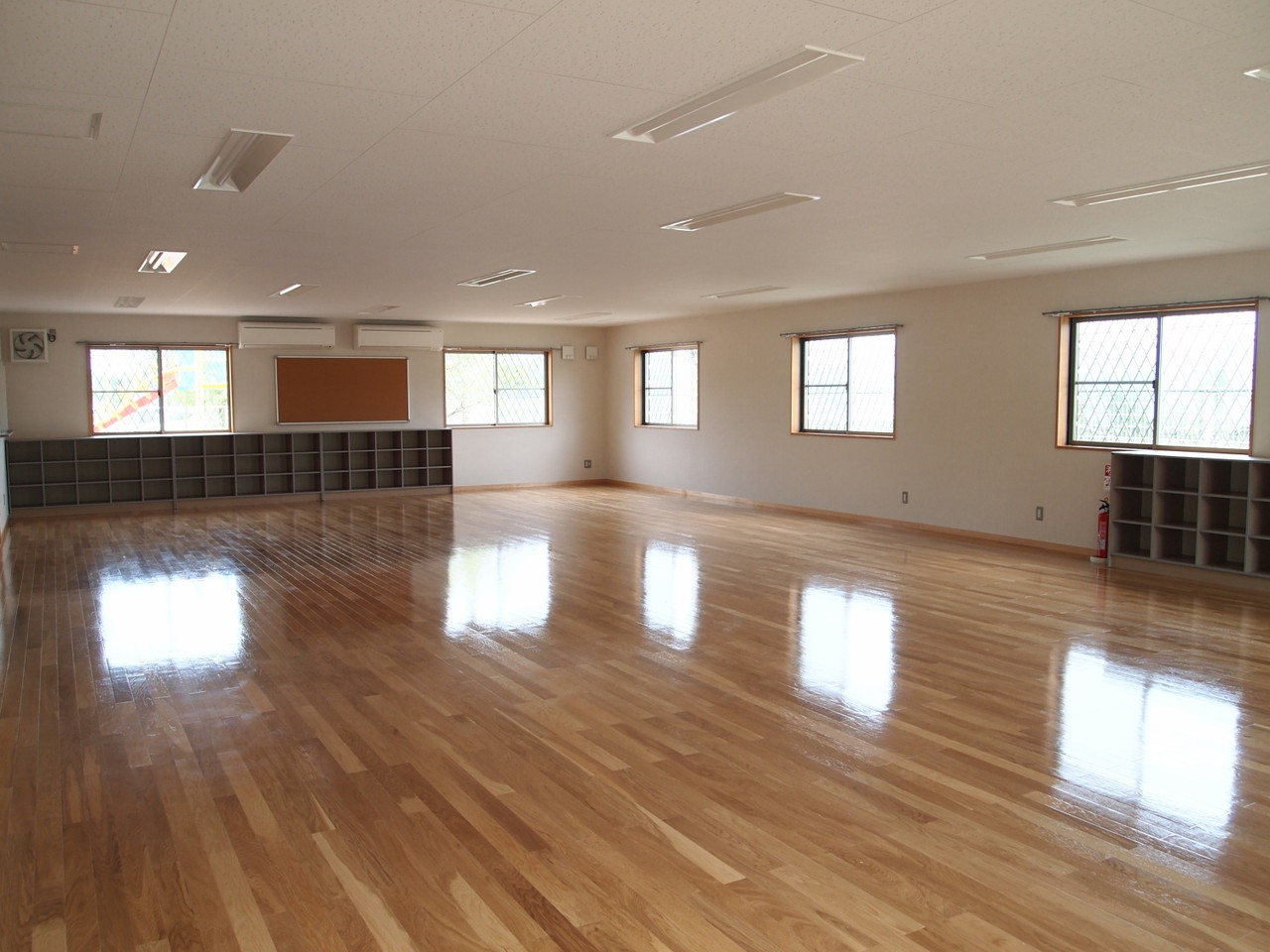 160㎡の広い保育室・調子が悪くなった児童が休める休養室・給湯室・トイレがあります。