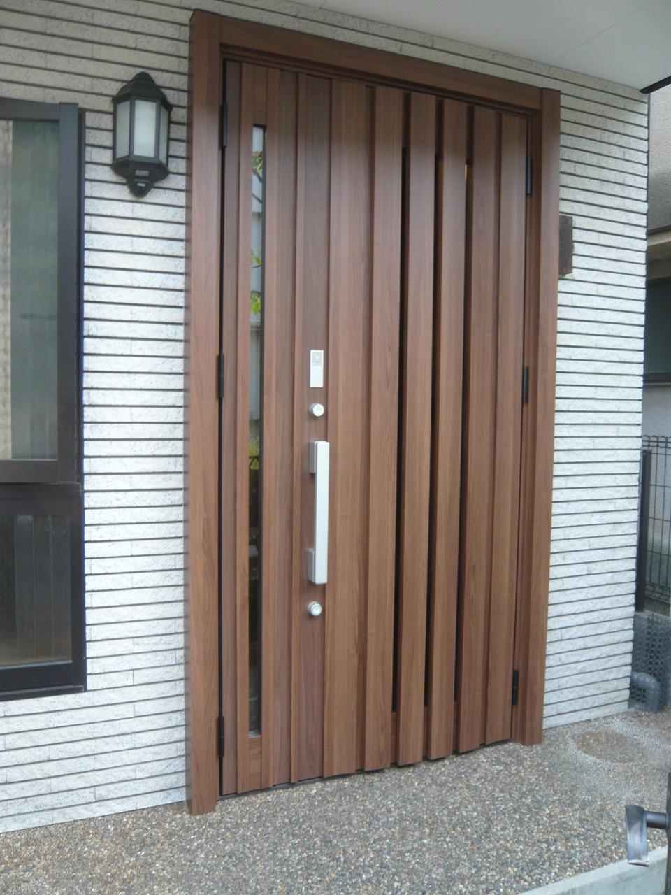 玄関ドアは半日で取付終了。自動キーなので荷物が多くても開ける事ができて便利です。