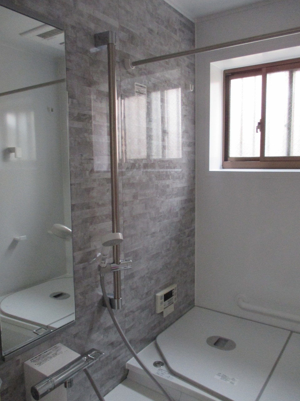 本当にきれいにお使いのお風呂でしたが、浴槽が深いということで入替えを検討されていました。TOTOのサザナは施工必要寸法が他社より小さく(ユニットバスの外側の部分です) 1216サイズがぎりぎりのI様邸でしたので、サザナをお勧めさせて頂きました。グレーのアクセントパネルですっきりキレイなお風呂に変身です。洗面化粧台もボウルが割れていたので交換しました。またトイレもLIXILの節水型トイレです。ちょうど省エネエコポイントも使って頂くことができ、お得なリフォームになりました。